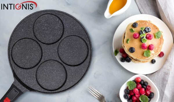 INTIGNIS Non-stick Pancake Pan – Multi-Hole Mini Pancake Pan with Removable Handle Option, 4/7 Holes, American Style Crepe and Pancake Pan for Perfect Individual