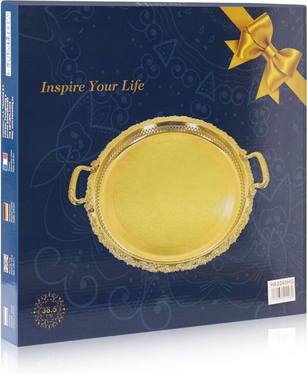 Tray Centrepiece Food Serving Appetizer Dish with Handles Large 38cm Dinner Coffee Table Ornament Cupcake Tray (Gold)