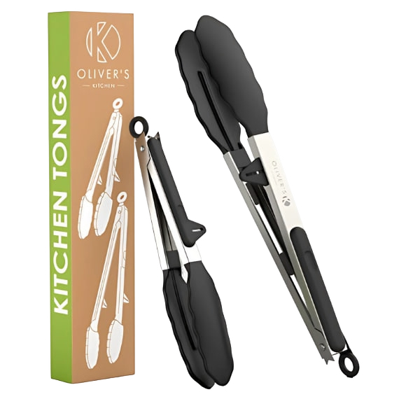 Oliver’s Kitchen – Cooking tongs – 2 x food-safe silicone kitchen tongs – locking clip for easy storage – Great for air fryer and serving – Easy to use and secure