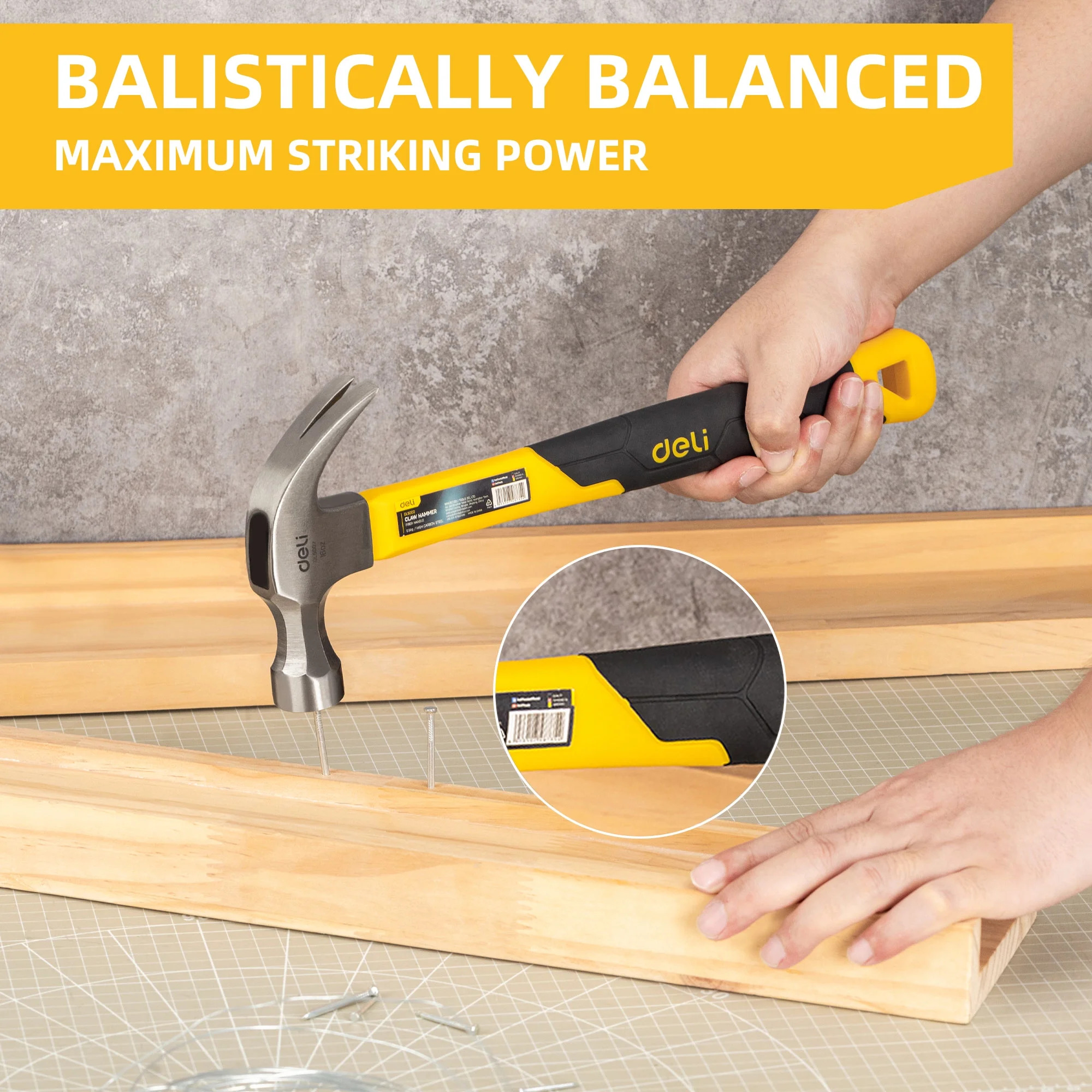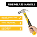 Deli 16-Ounce Claw Hammer with Fiberglass Handle, with Smooth Face & Shock Reduction Grip,Basic Hand Tool for DIY and Woodworking