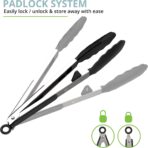 - Convenient locking mechanism: Lock and unlock our serving tongs with ease. Simply pull the clip to lock and push to unlock. While locked, the pliers are easy to store and save space. Alternatively, each BBQ tongue has a handy ring so you can hang them, maybe on your belt like a cowboy who likes to bbq