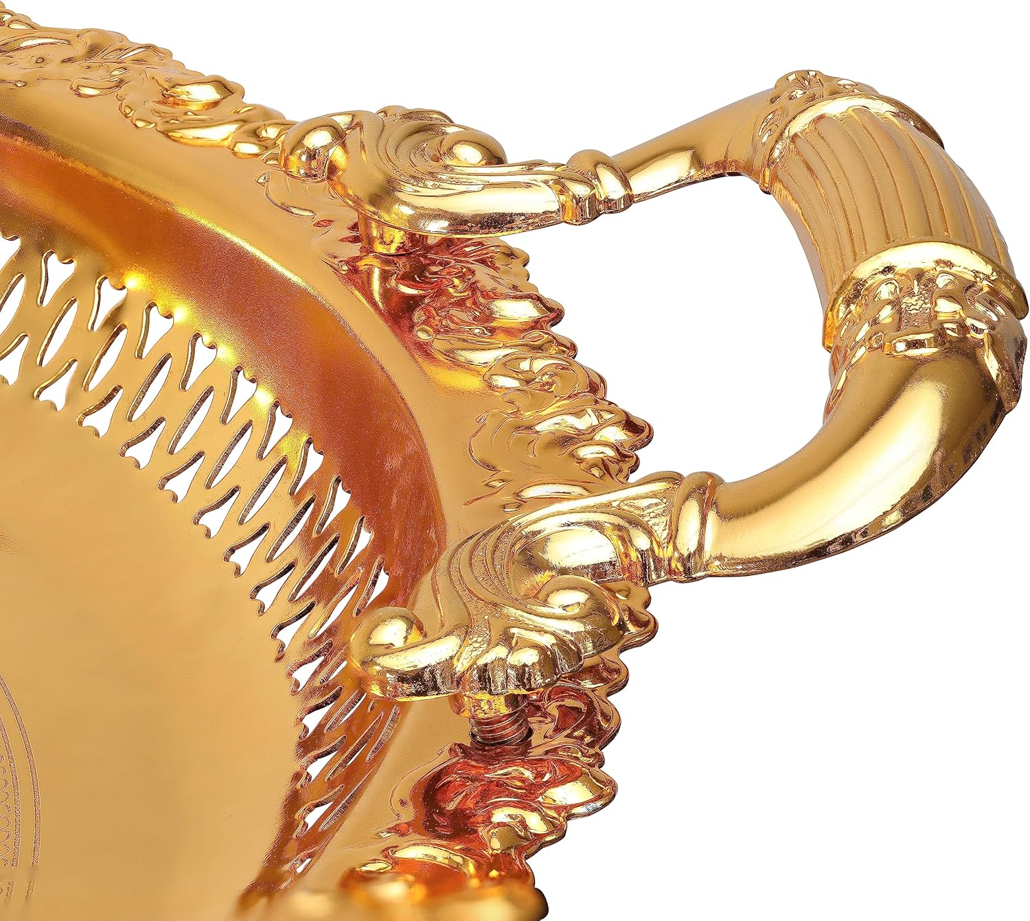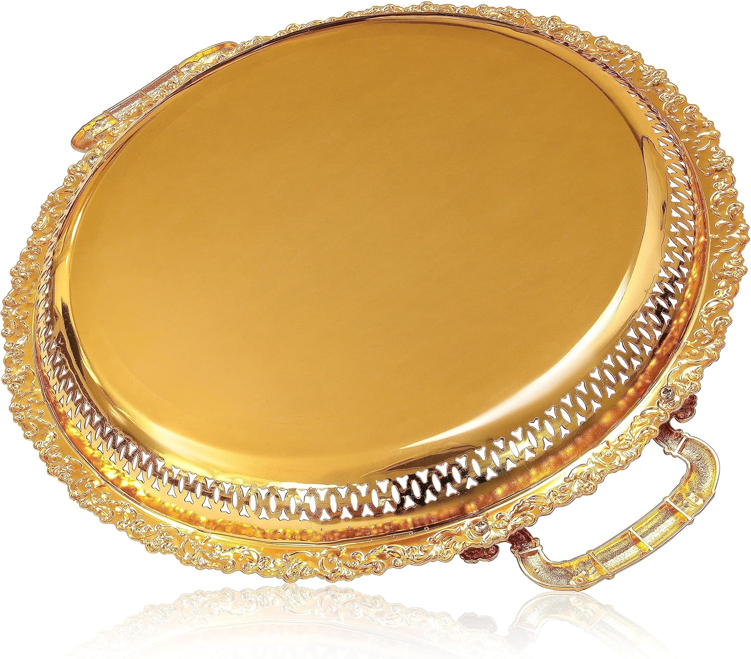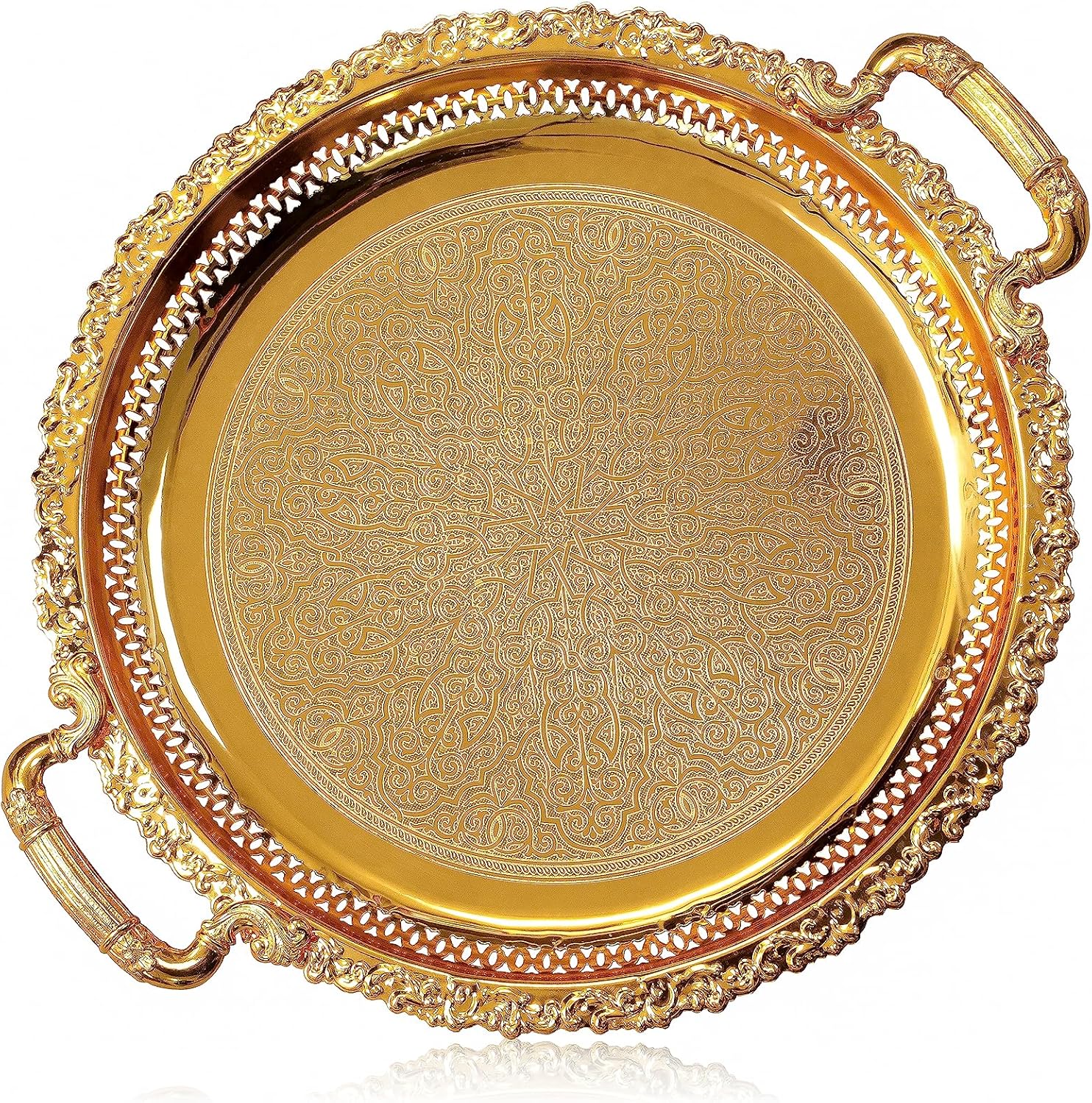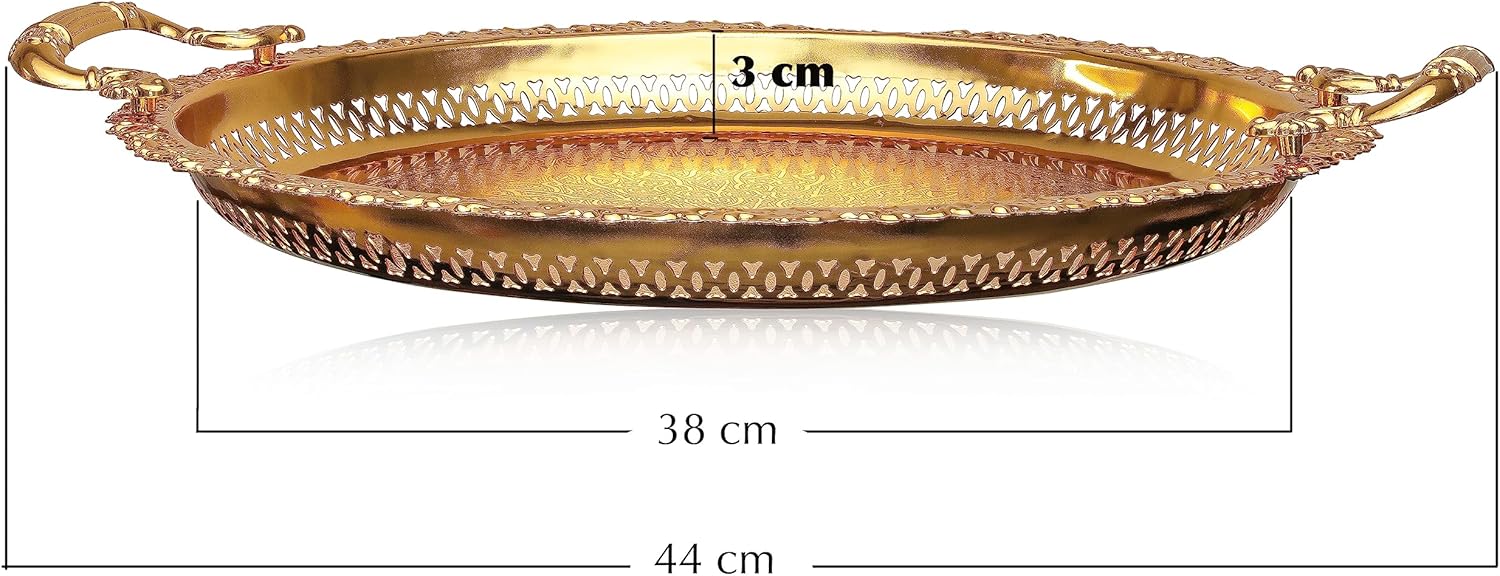 Tray Centrepiece Food Serving Appetizer Dish with Handles Large 38cm Dinner Coffee Table Ornament Cupcake Tray (Gold)